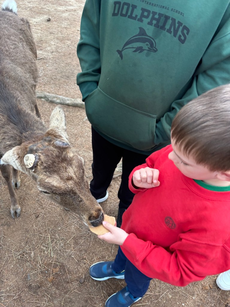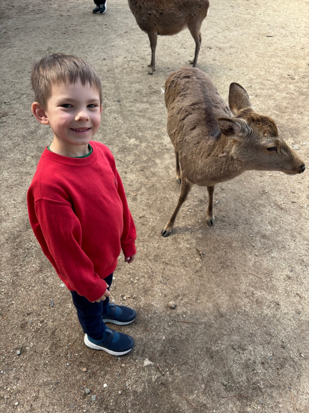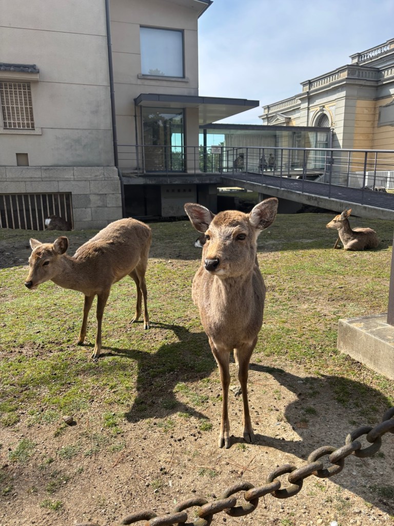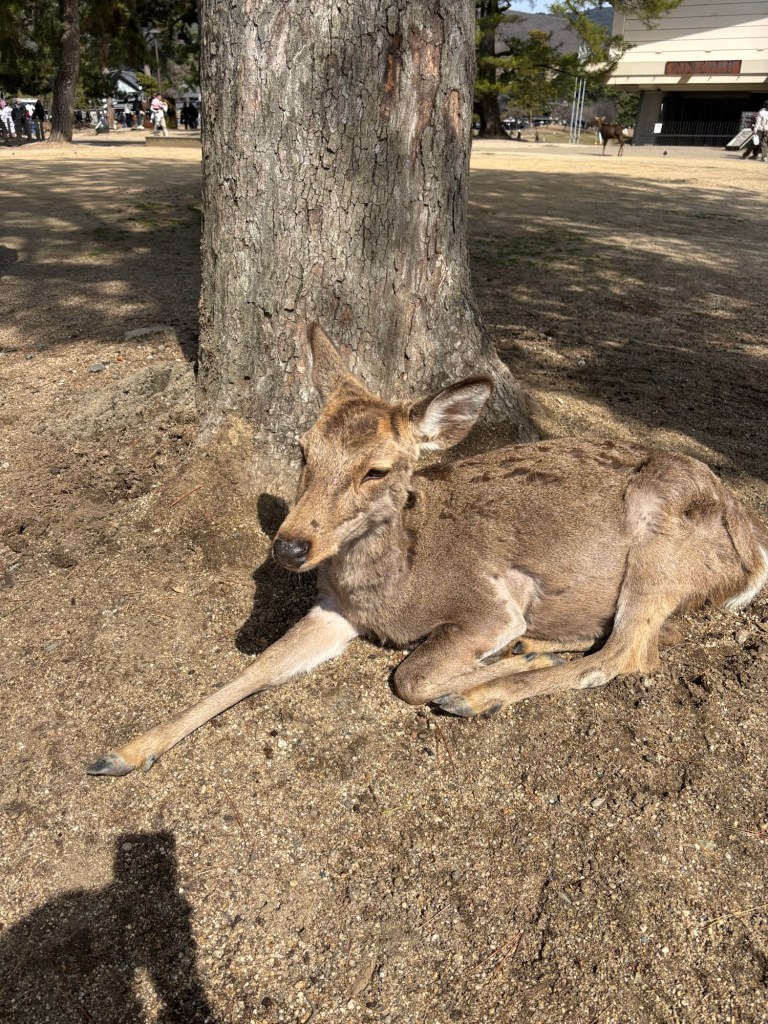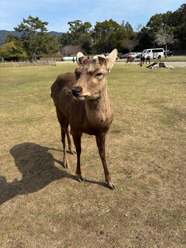 Day 3 we went to Nara. Blake has been waiting for this day since we moved to Japan in September. He was in heaven! He loves animals and to be able to walk around and pet the deer was so special for him. Riley and Grant were not impressed. Unfortunately I didn’t realize this was the Vernal Equinox in Japan and many people were off work. Also apparently they only sell a limited amount of the deer biscuits each day and had run out by the time we got there. So we didn’t get to feed them or really see them bow. But they were much calmer then we expected because they knew we didn’t have food. Blake was able to walk up to them and pet them. It was so fun to watch them randomly cross the road and stop traffic. And at lunch we watched them stealing food from people. It is such a fun atmosphere. We also went into the Todai-ji Temple and saw the giant Buddha. It was a small fee to enter, but a really cool thing to see. Blake took most of the deer pictures all by himself!